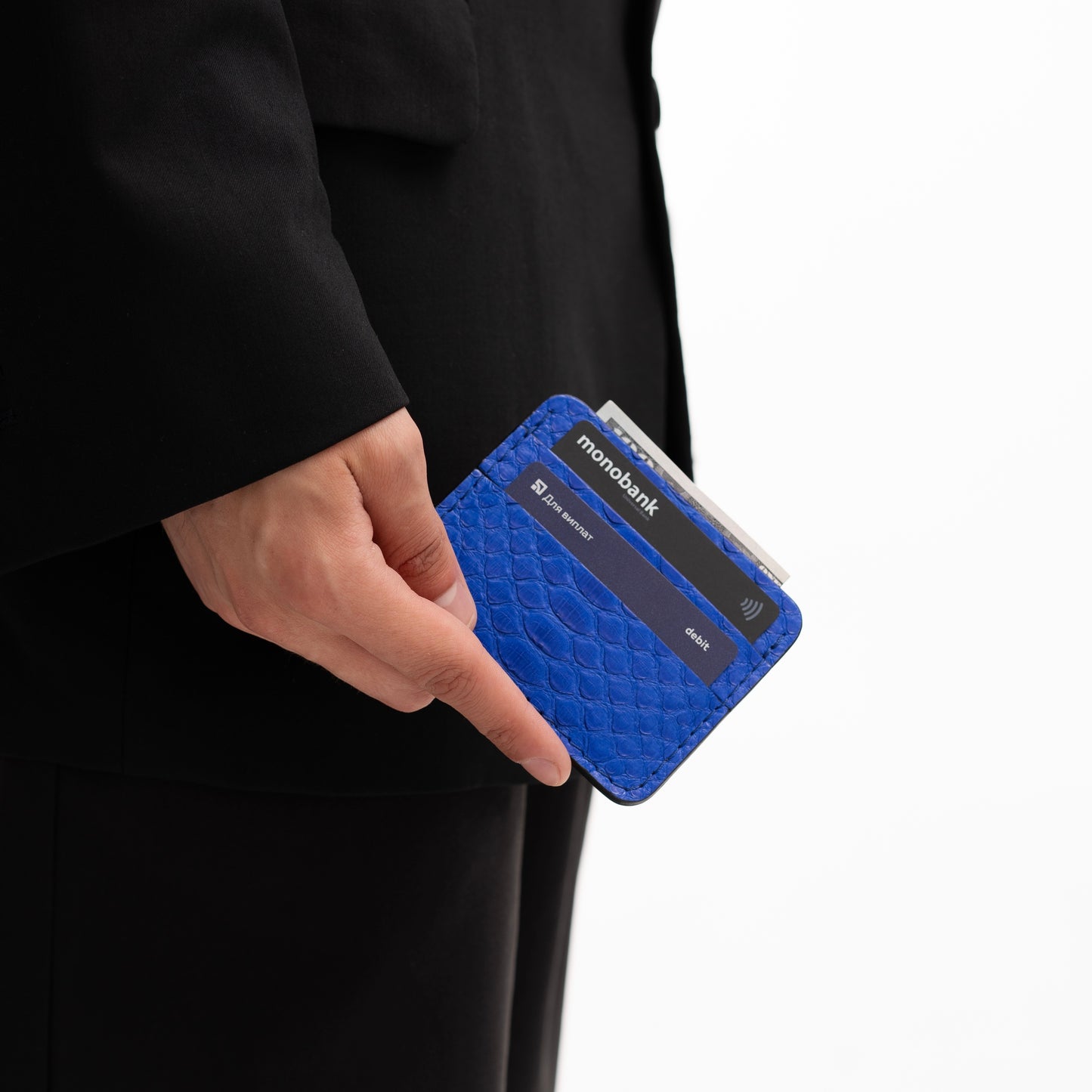 Choosing our prestigious cardholder made of python leather with wide scales expresses your unparalleled taste and demand for quality. All leather accessories are meticulously handcrafted by our artisans. We use the highest quality leather combined with the best materials to ensure premium-class products. * Please note! The color and shade may vary depending on monitor settings (brightness, contrast, saturation), as well as lighting. Why choose a cardholder made of python leather? Each piece of python leather used in this cardholder is carefully selected to ensure the highest quality and uniqueness. One of the main advantages of this prestigious cardholder is its functionality and practicality. It provides organized storage for your card collection with comfort and style. Thanks to its compact size, it easily fits into your pocket or bag, allowing you to have all your necessary cards at hand. Premium-quality materials. The cardholder is made of premium-class materials, with a special focus on high-quality python leather. Each cardholder is meticulously handcrafted by artisans with extraordinary attention to detail to ensure unmatched quality and perfection. The wide scales on the python leather create a captivating effect, adding sophistication and luxury to the cardholder. How to choose a cardholder? If you're looking for a quality cardholder made of leather, will help you choose the right model. We offer elite cardholders made not only of python leather but also other exotic materials. We value each of our customers and are happy to assist you with any questions. Buying a cardholder from us is always beneficial and enjoyable. |