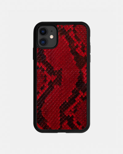 Choose the red python leather case with fine scales for iPhone 11 and you'll get a combination of elegance, luxury, and uniqueness. This case is designed to accentuate your style and attract attention. Red python leather reflects sophistication and status. This case will add luxury to your iPhone 11 and express your unique personality. Each fine scale creates a captivating playful effect that draws attention and creates a distinctive stylish accent. In addition to its aesthetic value, the red python leather case also provides reliable protection for your iPhone 11. Made from high-quality python leather, it protects your smartphone from scratches, impacts, and other external damages. Your iPhone 11 will remain flawless and stylish thanks to this case. The red python leather case features precise cutouts for all ports, buttons, and the camera of your iPhone 11. You can conveniently use all its functions without removing the case. Moreover, the case perfectly fits the dimensions of the smartphone, adding no extra bulk and ensuring a pleasant grip. The red python leather case is not just a protective accessory but also an expression of your style and individuality. It will highlight your uniqueness and attract attention. You will feel confident and stylish holding your iPhone 11 in this luxurious case. Choose the red python leather case for iPhone 11 and give your smartphone unparalleled style and protection. Feel confident and stylish.