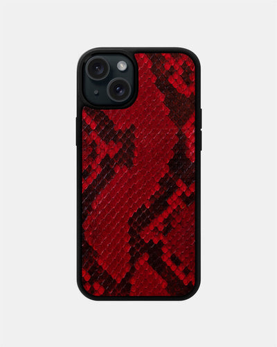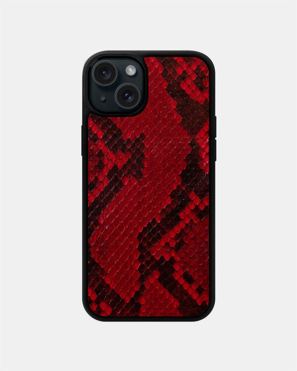 Choose the red python leather case with fine scales for iPhone 15 and you'll get a combination of elegance, luxury, and uniqueness. This case is designed to accentuate your style and attract attention. Red python leather reflects sophistication and status. This case will add luxury to your iPhone 15 and express your unique personality. Each fine scale creates a captivating playful effect that draws attention and creates a distinctive stylish accent. In addition to its aesthetic value, the red python leather case also provides reliable protection for your iPhone 15. Made from high-quality python leather, it protects your smartphone from scratches, impacts, and other external damages. Your iPhone 15 will remain flawless and stylish thanks to this case. The red python leather case features precise cutouts for all ports, buttons, and the camera of your iPhone 15. You can conveniently use all its functions without removing the case. Moreover, the case perfectly fits the dimensions of the smartphone, adding no extra bulk and ensuring a pleasant grip. The red python leather case is not just a protective accessory but also an expression of your style and individuality. It will highlight your uniqueness and attract attention. You will feel confident and stylish holding your iPhone 15 in this luxurious case. Choose the red python leather case for iPhone 15 and give your smartphone unparalleled style and protection. Feel confident and stylish.