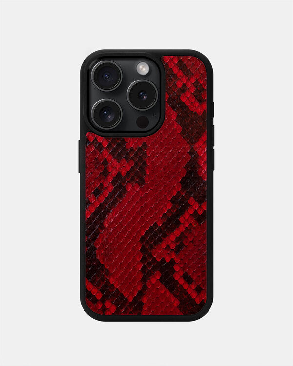 Choose the red python leather case with fine scales for iPhone 15 Pro and you'll get a combination of elegance, luxury, and uniqueness. This case is designed to accentuate your style and attract attention. Red python leather reflects sophistication and status. This case will add luxury to your iPhone 15 Pro and express your unique personality. Each fine scale creates a captivating playful effect that draws attention and creates a distinctive stylish accent. In addition to its aesthetic value, the red python leather case also provides reliable protection for your iPhone 15 Pro. Made from high-quality python leather, it protects your smartphone from scratches, impacts, and other external damages. Your iPhone 15 Pro will remain flawless and stylish thanks to this case. The red python leather case features precise cutouts for all ports, buttons, and the camera of your iPhone 15 Pro. You can conveniently use all its functions without removing the case. Moreover, the case perfectly fits the dimensions of the smartphone, adding no extra bulk and ensuring a pleasant grip. The red python leather case is not just a protective accessory but also an expression of your style and individuality. It will highlight your uniqueness and attract attention. You will feel confident and stylish holding your iPhone 15 Pro in this luxurious case. Choose the red python leather case for iPhone 15 Pro and give your smartphone unparalleled style and protection. Feel confident and stylish.