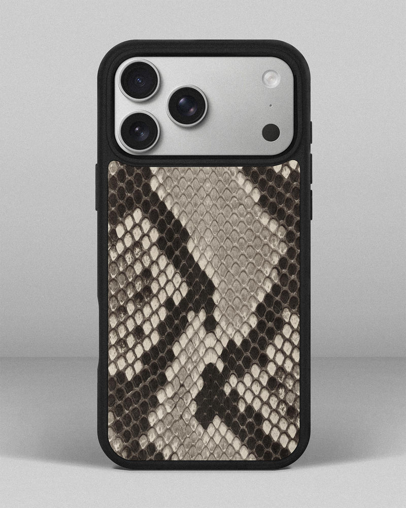 Чорно-білий спортивний чохол зі шкіри пітона для iPhone 16 Pro Max