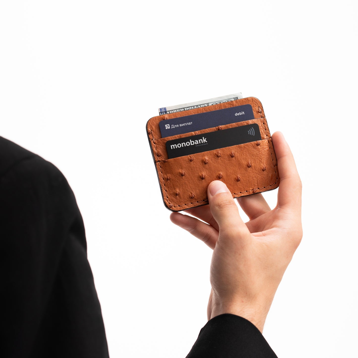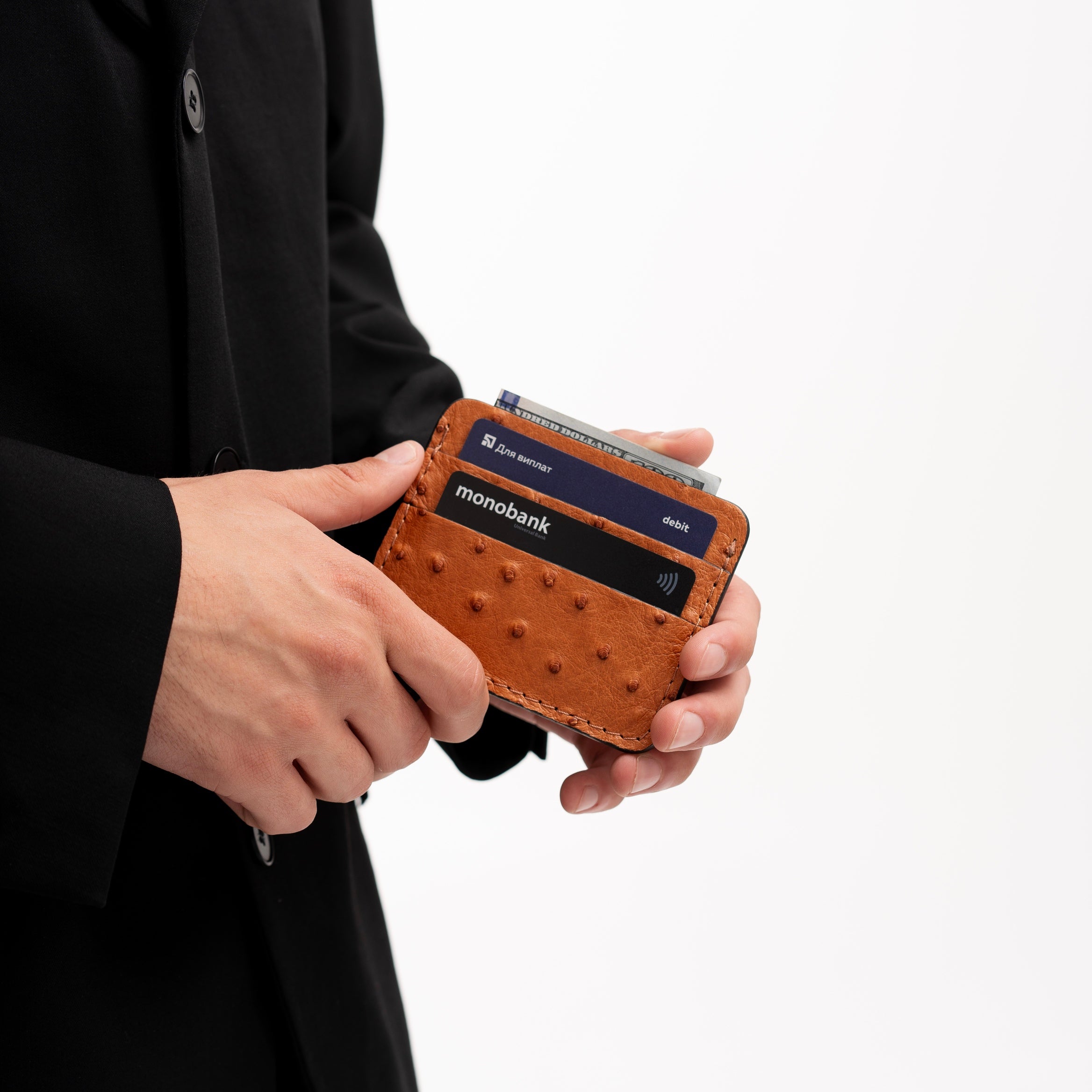 Неперевершений аксесуар, який втілює в собі розкіш і унікальний стиль. Усі шкіряні аксесуари ретельно виготовляються вручну нашими майстрами. Ми використовуємо шкіру найвищої якості в поєднанні з найтоншим швом, щоб забезпечити продукт преміум-класу. * Зверніть увагу! Колір і відтінок можуть відрізнятися в залежності від налаштувань монітора (яскравість, контраст, насиченість), а також освітлення. Чому варто вибрати картхолдер зі шкіри страуса з фолікулами? Однією з головних причин вибрати візитницю зі шкіри страуса з фолікулами є її унікальність. Шкіра страуса від природи має фолікули, які надають цьому аксесуару характерного вигляду. Кожен власник картки створений з увагою до деталей, щоб зберегти цю особливу текстуру та красу страусиної шкіри. Матеріали преміум якості. Компактний дизайн і високоякісний матеріал картхолдера забезпечують легку організацію та доступ до ваших карток. Він забезпечує достатньо місця для зберігання кредитних карток, дебетових карток, візитних карток та інших документів. Візитниця з фолікулами зі шкіри страуса поєднує в собі стиль і функціональність, що робить її незамінним аксесуаром у вашому повсякденному житті. Як вибрати власника картки? Якщо ви шукаєте якісний картхолдер зі шкіри, допоможемо підібрати потрібну модель. Ми пропонуємо елітні картхолдери не тільки зі шкіри страуса, а й з інших екзотичних матеріалів. Ми цінуємо кожного нашого клієнта і раді допомогти вам з будь-якими запитаннями. Купувати картхолдер у нас завжди вигідно і приємно. |
